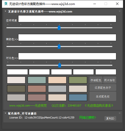 安装方法: Win10系统请以管理员身份运行安装,安装完成后,打开3Dmax软件,在到max菜单里找WJtoolScript菜单栏下,打开设计配色插件,复制ID发给客服激活,激活好重新打开即可使用